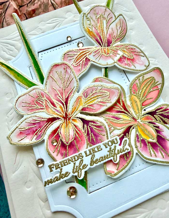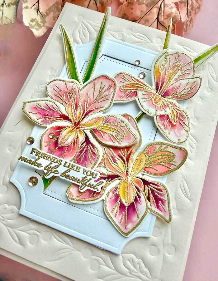 The Winter Iris stamp and die set was a pleasure to use and very versatile. I know I will reach for it for many occasions, including birthdays, well-wishes, and even holidays. All I have to do is change the color of the flowers to match my occasion! ♥