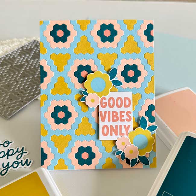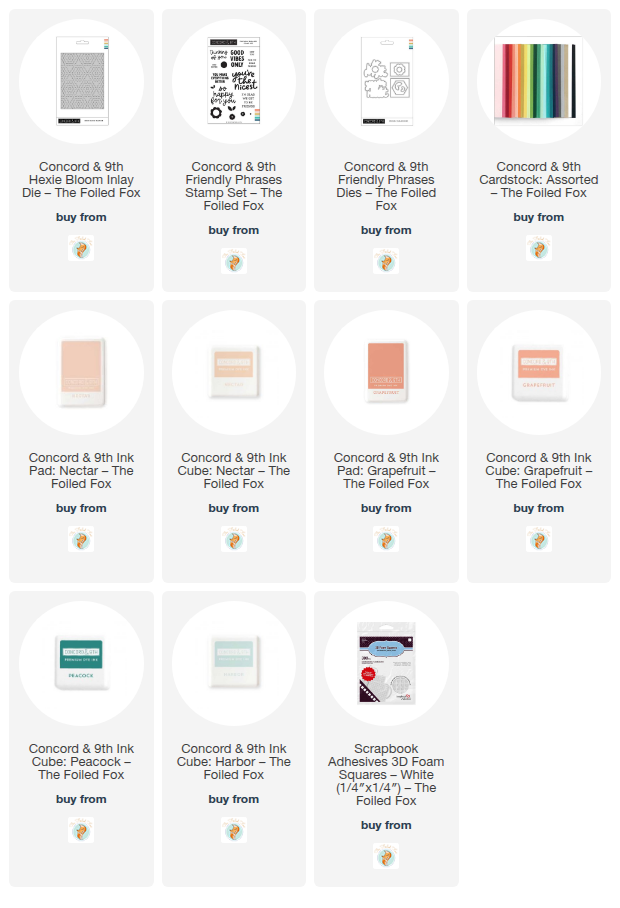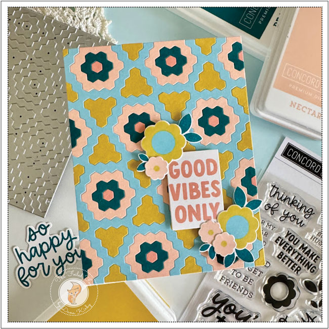 Hello Friends! It’s Dana (IG: dkirbystamps) here today, and I am back with a card that uses the Hexie Bloom inlay die and Friendly Phrases set from Concord & 9th.