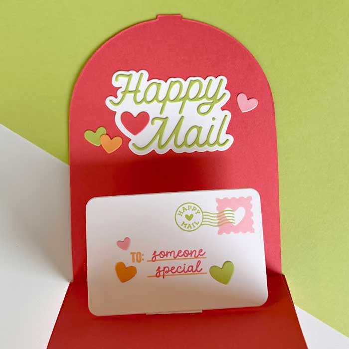 For the inside of my card, I used the Happy Mail dies to create the fun letter pop-up. I then used the coordinating stamps and dies to add lots of fun details. So many fun possibilities with these sets!