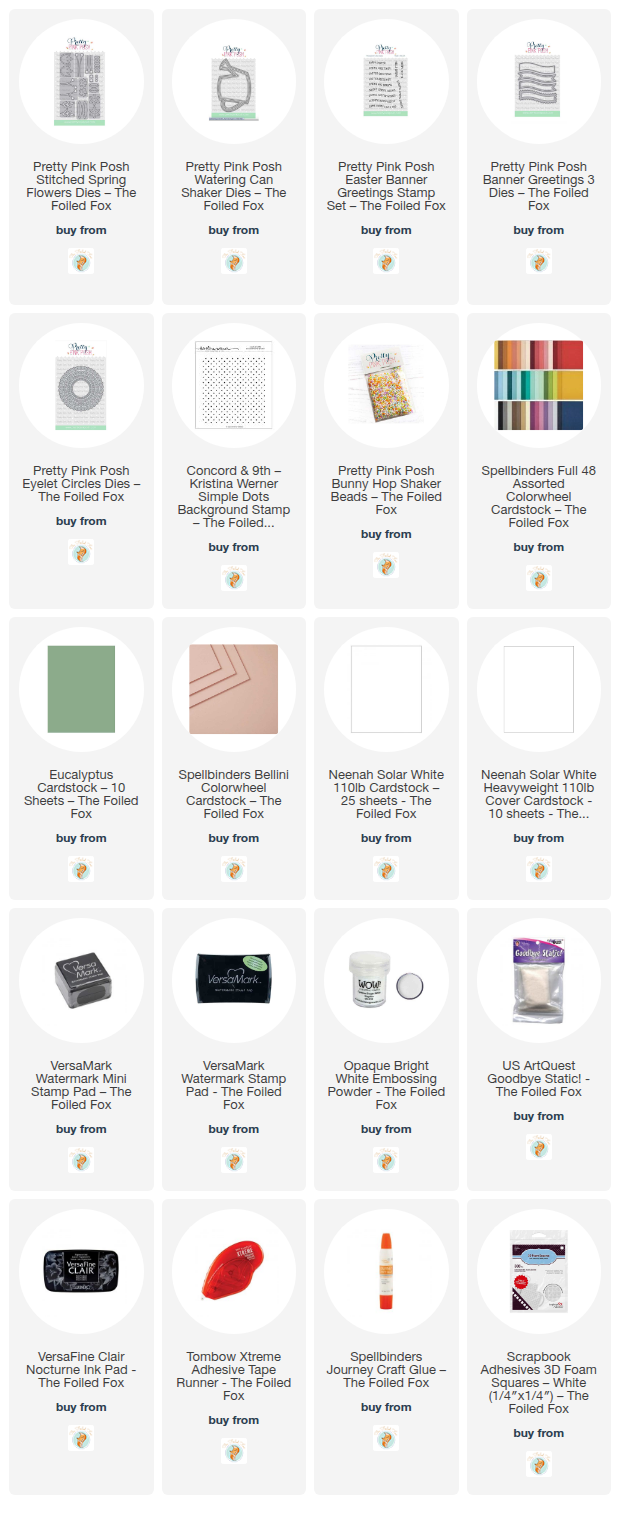 The watering can and flowers were mounted next onto the card front. To finish, a banner strip was added by stamping a sentiment using Nocturne ink and the Easter Banner Greetings stamp. Then, the sentiment strip and its backing were cut using the new Pretty Pink Posh Banner Greetings 3 Dies.