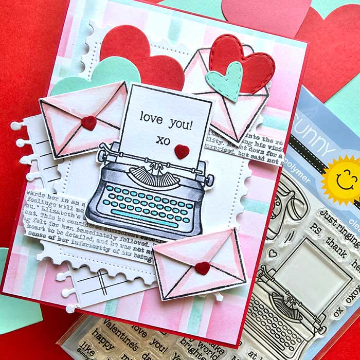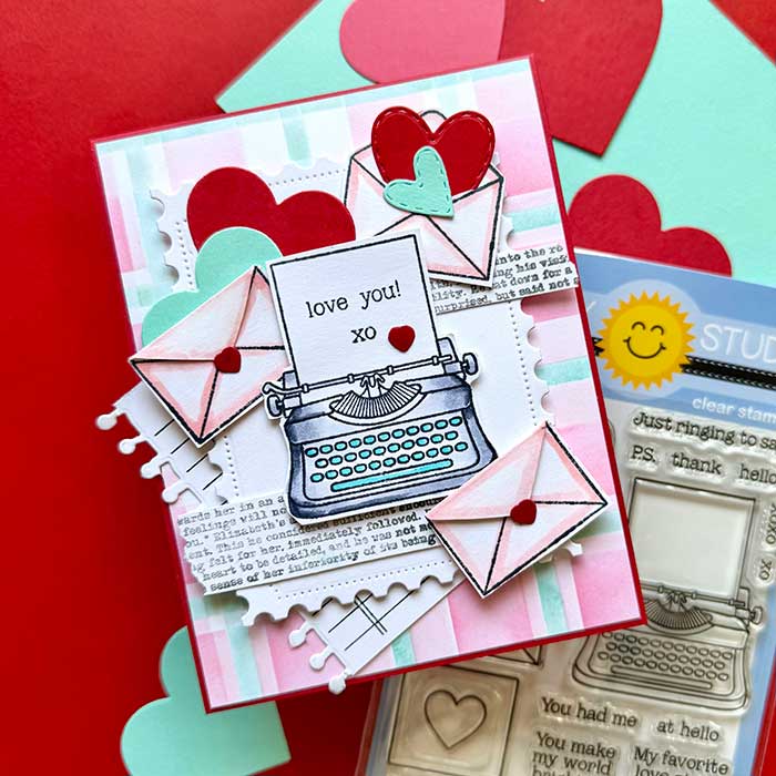 Sunny Studio Stamps has a new release, featuring a few super fun Valentine’s Day-themed stamps and dies. One of the sets is the awesome Vintage Valentine. This set features lots of noteworthy goodies to create your own Valentine’s Day for those special someone on your list. I am a sucker for anything that’s about postage stamps, letters, and the such so this set was perfect.