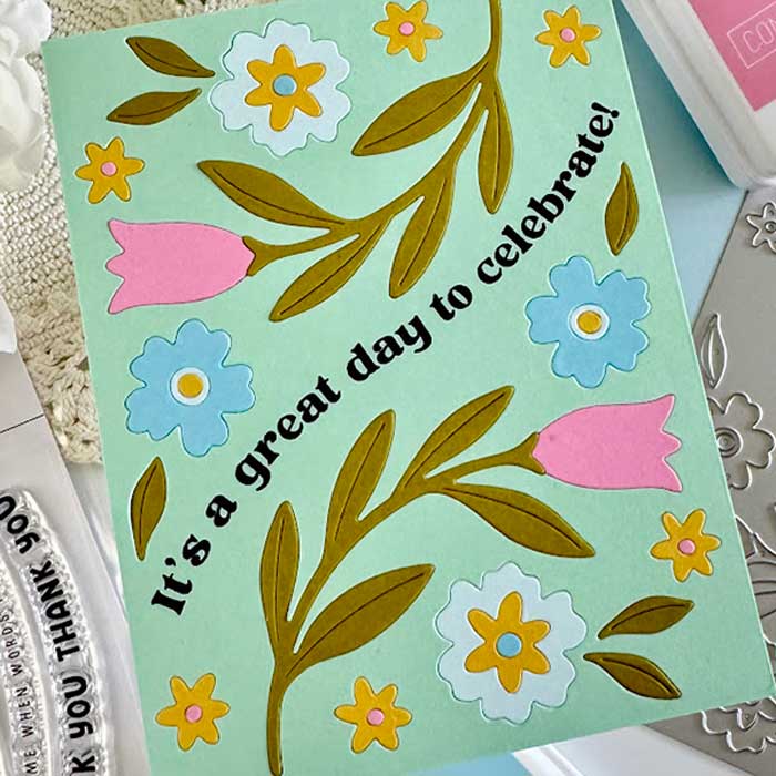 It’s Dana (IG: @dkirbystamps) here today, and I am back with a card that uses the Petal Path Inlay die and stamp set from Concord & 9th. This set creates a sweet floral design that can be used for lots of special occasions.