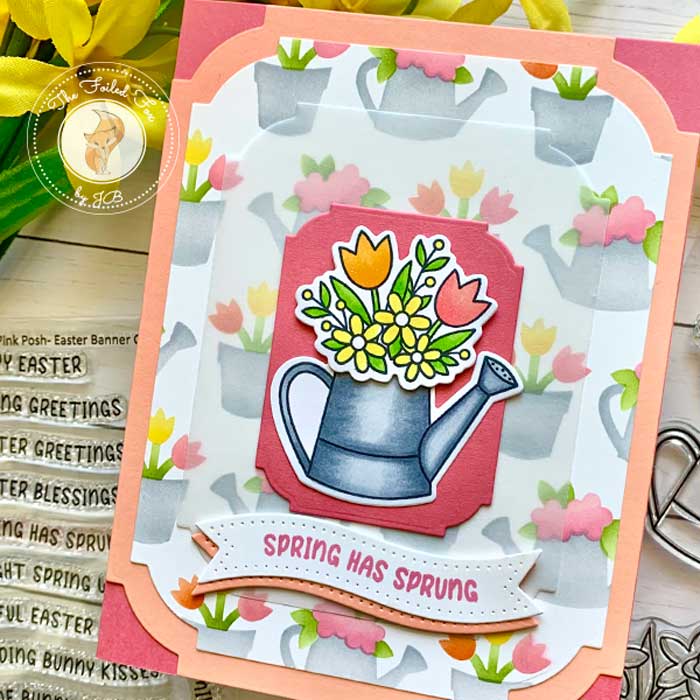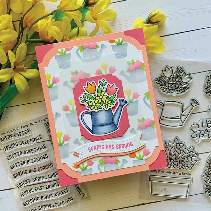 JB (@inkblissbyjb) here. I’m happy to be here today to share an A2-size card featuring the “Spring Blooms” stamp and die set at Pretty Pink Posh.