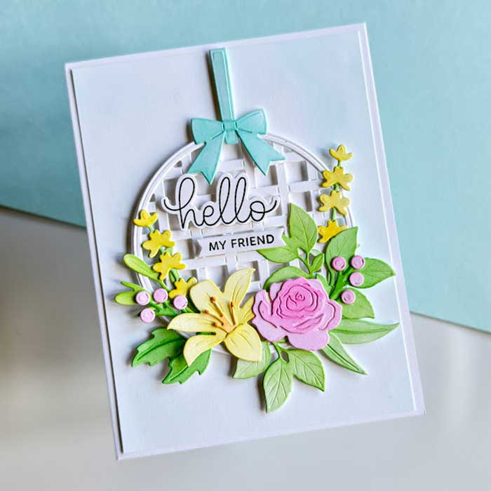 Thanks for joining me today and I hope I inspired you to use the Into the Blooms: Spring Basket dies. I know it is a set I will be reaching for often as it can be used for a variety of occasions.