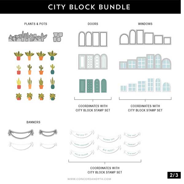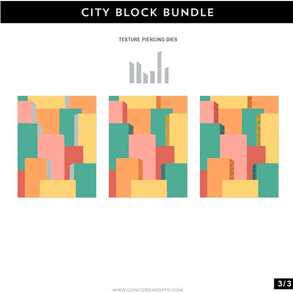 City Block stencil pack by Concord and 9th. Layer together colorful neighborhoods and vibrant communities right on the front of your card with the City Block Stencil Pack! Add in the details with the coordinating with the City Block Stamp Set and City Block Dies. Four 4.75″ x 6″ stencils.