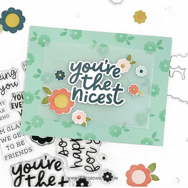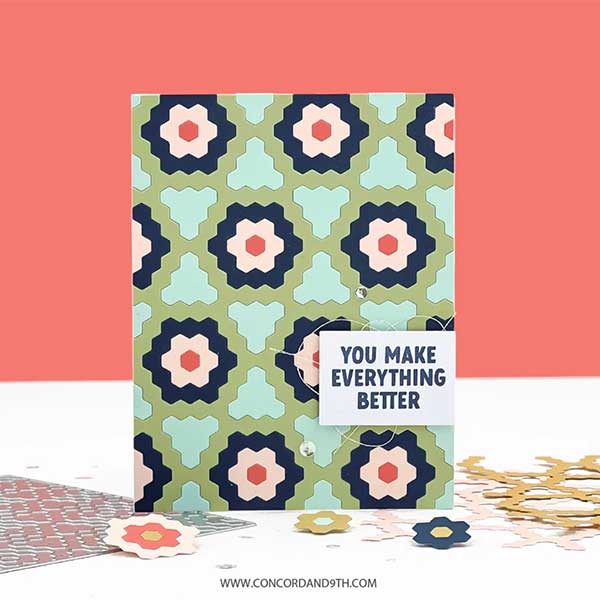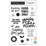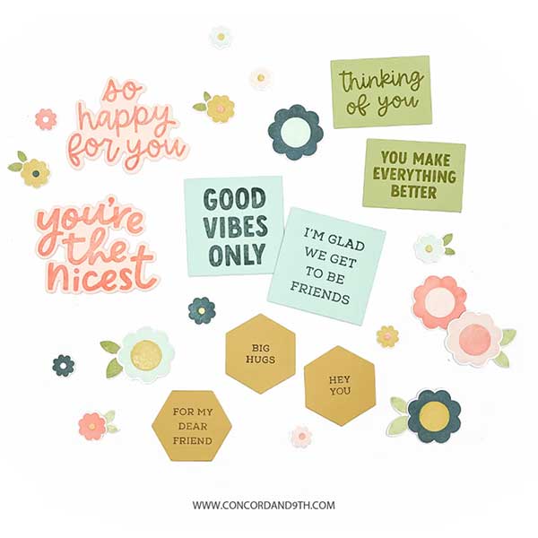 Friendly Phrases stamp set by Concord and 9th. The Friendly Phrases Stamp Set features several cheerful sentiments and flowers that echo the designs found in the Patchwork Inlay Die. You stamp the greetings directly onto your card or cut them out with the coordinating Friendly Phrases Dies9see below) for a layered look. 4″ x 6″. 15 stamps.