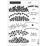 Hillside clear stamp set by Concord and 9th. The Hillside Stamp Set is full of floral patterns and sweet sentiments to use alongside the Hillside Dies and the Hillside Stencil Pack. They can also be stamped along the bottom of any card to create a lovely field of flowers. 6″ x 8″. 15 stamps.