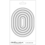 A2 Oval Basics die set by Kristina Werner for Concord & 9th. Create perfect oval shapes with thin frames. The largest die measures 4.25” x 5.5”, with four additional thin frames and a small oval die in the center. 6 pieces.