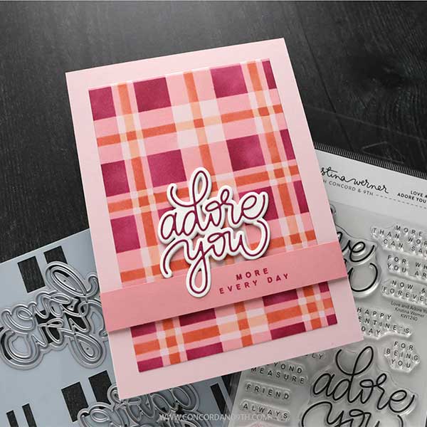 Plaid Perfection Stencil Pack by Concord and 9th and Kristina Werner. Designed for effortless layering, these stencils allow you to build a classic plaid background with clean lines and endless color combinations. Sized perfectly for A2 cards (4.25” x 5.5”), A7 cards (5” x 7”), and even larger projects. Six 6” x 9” stencils.