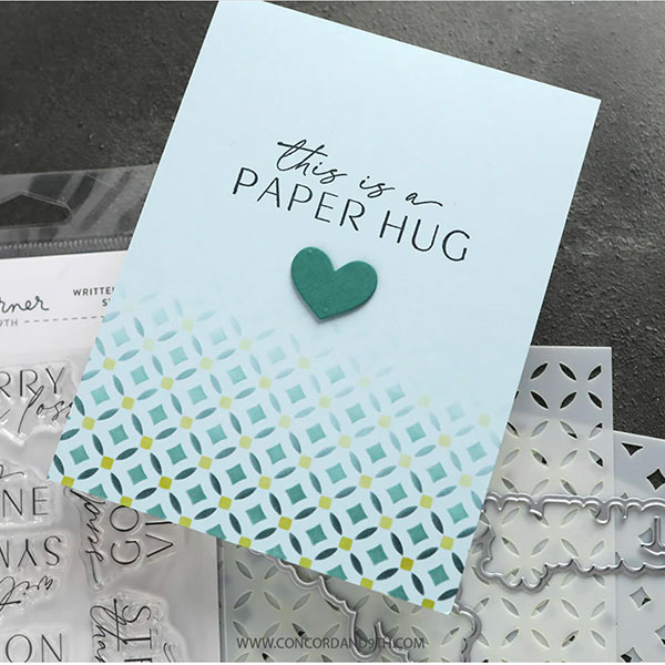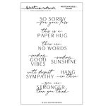 Written Words 2 stamp set by Concord and 9th and Kristina Werner. The Written Words 2 Stamp Set features a collection of heartfelt handwritten and typed sentiments perfect for sympathy, encouragement, and supportive cards. With phrases like “So sorry for your loss,” “This is a paper hug,” “Hang in there,” and “You are stronger than you think,” this set provides thoughtful messages for life’s hardest moments. 4×6.