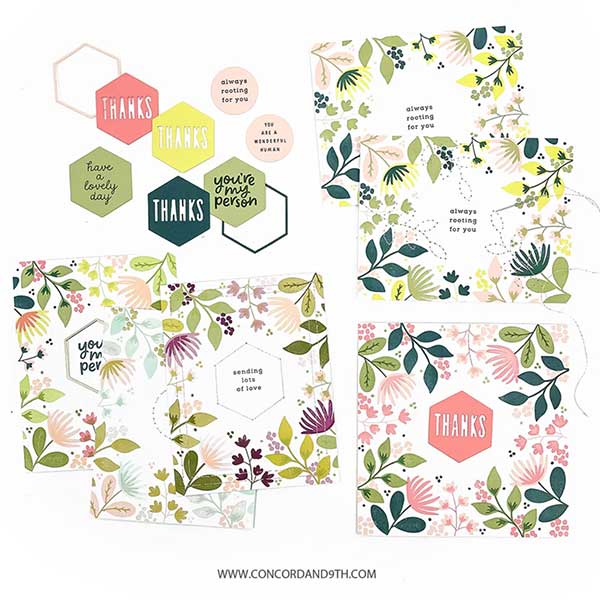 Wild Meadow dies by Concord and 9th. Add the perfect finishing touch to your projects with the Wild Meadow Dies! This versatile set includes a hexagon and circle that perfectly cut around the greetings from the coordinating Wild Meadow Turnabout™ Stamp Set. The hexagon die also has a drop-in “thanks” for an additional sentiment option. Create subtle yet stunning metallic details with the leafy piercing dies, or add stitched accents around your sentiments using the circle and hexagon piercing dies. 7 pieces. See coordinating stamp below