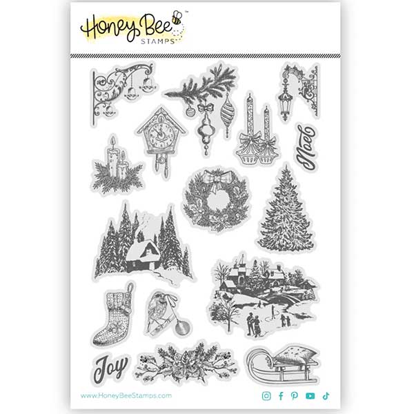 Gallery Wall: Holiday stamp by Honey Bee Stamps. Build your holiday masterpiece with this fantastic 16-piece 5″ x 7″ rubber cling stamp set! Proudly made in the USA with meticulous attention to detail, these flexible stamps adhere exactly where you want them and peel away without a trace when you’re done. Perfect for layering, positioning, and repositioning until your design is just right. Stack them, mix them, create gallery-worthy layouts—the possibilities are endless. Your next stamping adventure awaits!