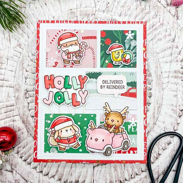 Santa’s Friends die set by Mama Elephant. Mama Elephant’s beloved characters are back and ready to spread holiday cheer! This festive die set features their iconic cuties dressed in seasonal gear as they lend Santa a helping hand. From riding along in his sleigh to zipping around in the whimsical reindeer-mobile, these playful designs are perfect for creating merry and magical holiday projects. Set of 8 dies.