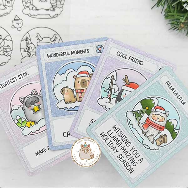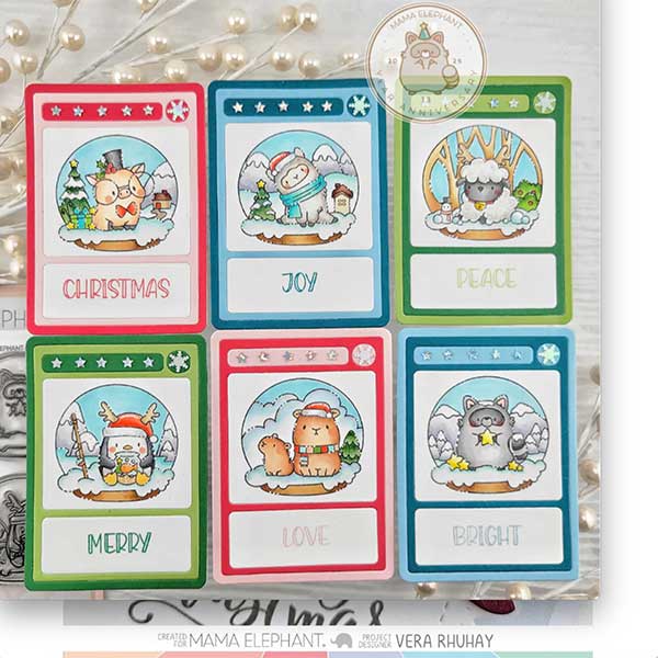Winter Globes stamp set by Mama Elephant. Step into the magic of the season with this enchanting Winter Globes clear stamp set, featuring six delightful snow globes, each filled with Mama Elephant’s very own winter wonderland. Inside every globe, you’ll find one of Mama Elephant’s iconic critter friends enjoying their cozy winter moments—perfect for adding a whimsical touch to your holiday cards, gift tags, and winter projects. Pair it with the coordinating die set (sold separately) to create interactive shaker cards and tags that sparkle like real snow globes!