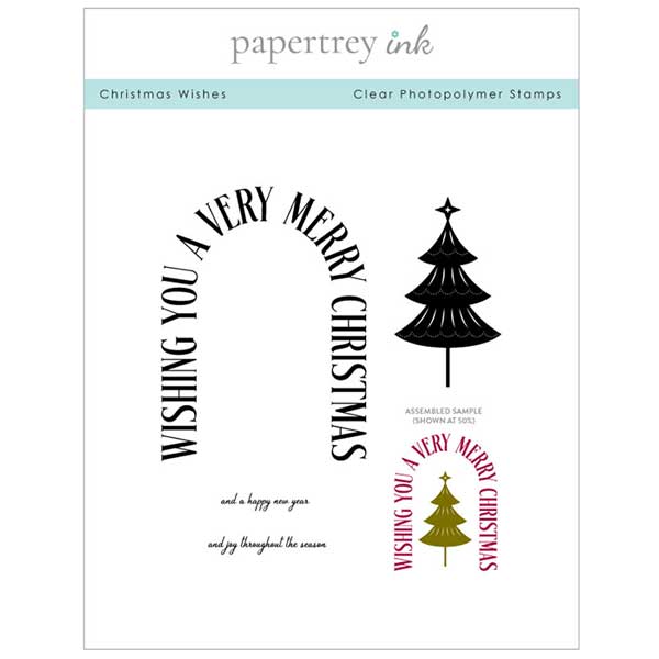 Christmas Wishes stamp set by Papertrey Ink. Christmas Wishes is a timeless holiday set designed to make your seasonal crafting shine. The beautifully arched greeting, Wishing You a Very Merry Christmas, creates an instant focal point full of warmth and cheer, while the coordinating decorative tree nestles perfectly inside it for a beautifully finished look. Whether you’re creating cards, tags, or festive décor, this set delivers effortless elegance and heartfelt Christmas spirit every time.