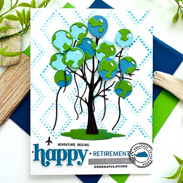 Balloons: 7/8” x 1”, 3/4” x 7/8” Tree – 3” x 4 3/8” Happy birthday – 3” x 2” Ballon details: 7/8”, 3/4” Strings: 1/8” x 1 7/8”, 1/8” x 2”, 3/16” x 2 1/4” Shadow – 2 3/4” x 1/2”