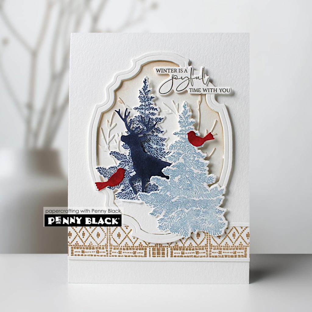 Cozy Comfort die set by Penny Black.  This 8 piece set coordinates with the “Cozy Comfort” stamp set to cut out each sentiment (see below)