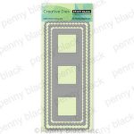 Slimline Zig-Zag die set by Penny Black. Create fun and interesting borders on your slimline cards using this die set! Also, included is a die to make 3 decorative windows. 3 piece die set.