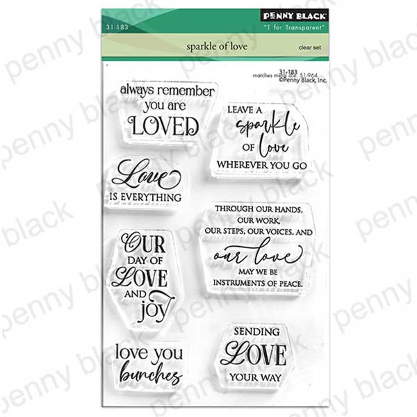 Sparkle of Love clear stamp set by Penny Black. This sentiment set is packed with love-centric sentiments. It also has coordinating dies so you can cut out sentiments to your heart’s content! Perfect for Valentine’s Day or an anniversary, or anytime you want to spread the love.