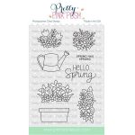Spring Blooms stamp set by Pretty Pink Posh. The Spring Blooms stamp set is perfect for adding a bit of whimsy to your cards, tags, and more. The set features four different floral images, a watering can, flower planter and two sentiments.