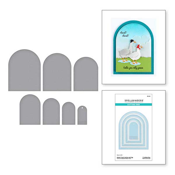 Perfect Touch Arches Etched Dies by Spellbinders This set of seven thin metal cutting dies creates a series of nesting arches with decorative edges that give a wonderful finished look. Use them as solid shapes to anchor your design, create frames by nesting two, or make shaped cards. So many versatile design options. The smallest shape is a cute tag to accent a project or gift.